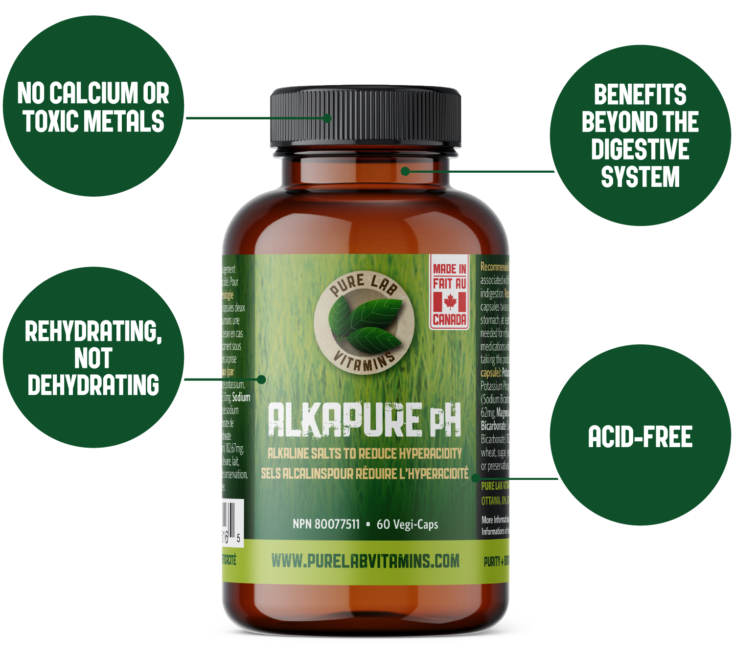 Pure Lab Vitamins - AlkaPure pH - 60 Veg Capsules - NPN: 80077511